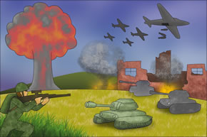 Si el conflicto es de dimensiones mayores, como una guerra o un enfrentamiento armado entre naciones o entre grupos de personas, los daños son todavía mayores; por ejemplo:
