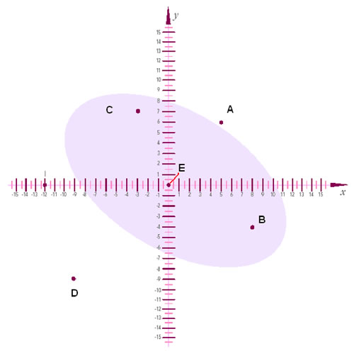 Un barco se encontraba en el punto (0, 0) y avanzó 7 kilómetros al Oeste y 9 kilómetros hacia el Norte. ¿En qué punto se encuentra?