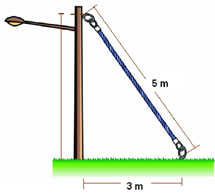 Analiza la siguiente ilustración y calcula la altura a la que se debe fijar el cable en el poste para que permanezca perpendicular al piso.