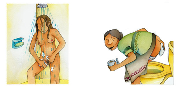 Se deben asear los órganos sexuales durante el baño, separando con los dedos de una mano los labios mayores de la vulva y con la otra, eliminando los residuos de orina. Es necesario evitar que el jabón entre por el orificio vaginal, porque produce ardor. Después de orinar, será necesario que la limpieza de la vulva se haga pasando el papel de adelante hacia atrás; y cuando se defeca, el ano se limpiará también de adelante hacia atrás, para evitar que la vulva tenga contacto con el excremento y se provoque una infección. Es recomendable que las mujeres revisen periódicamente sus órganos sexuales con un espejo para detectar si hay flujo o irritación, de ser así, deberán consultar a un médico o ir al servicio de salud más cercano a su comunidad. En los hombres