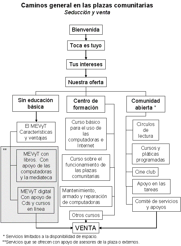 Formación de consejos comunitarios en el que participen los representantes de: la comunidad, las organizaciones sociales, la iniciativa privada, los educandos y otras fuerzas sociales no políticas. Esto con el fin de apoyar la Plaza en su operación y definir las actividades que se darán a los miembros de la comunidad.